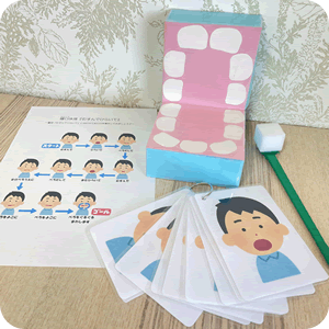 からふるでは、食後に歯みがきの時間を設けています。歯を磨くだけではなく、その後の含みうがいや喉うがいも、その子の段階に合わせて練習し、獲得していけるように支援しています。